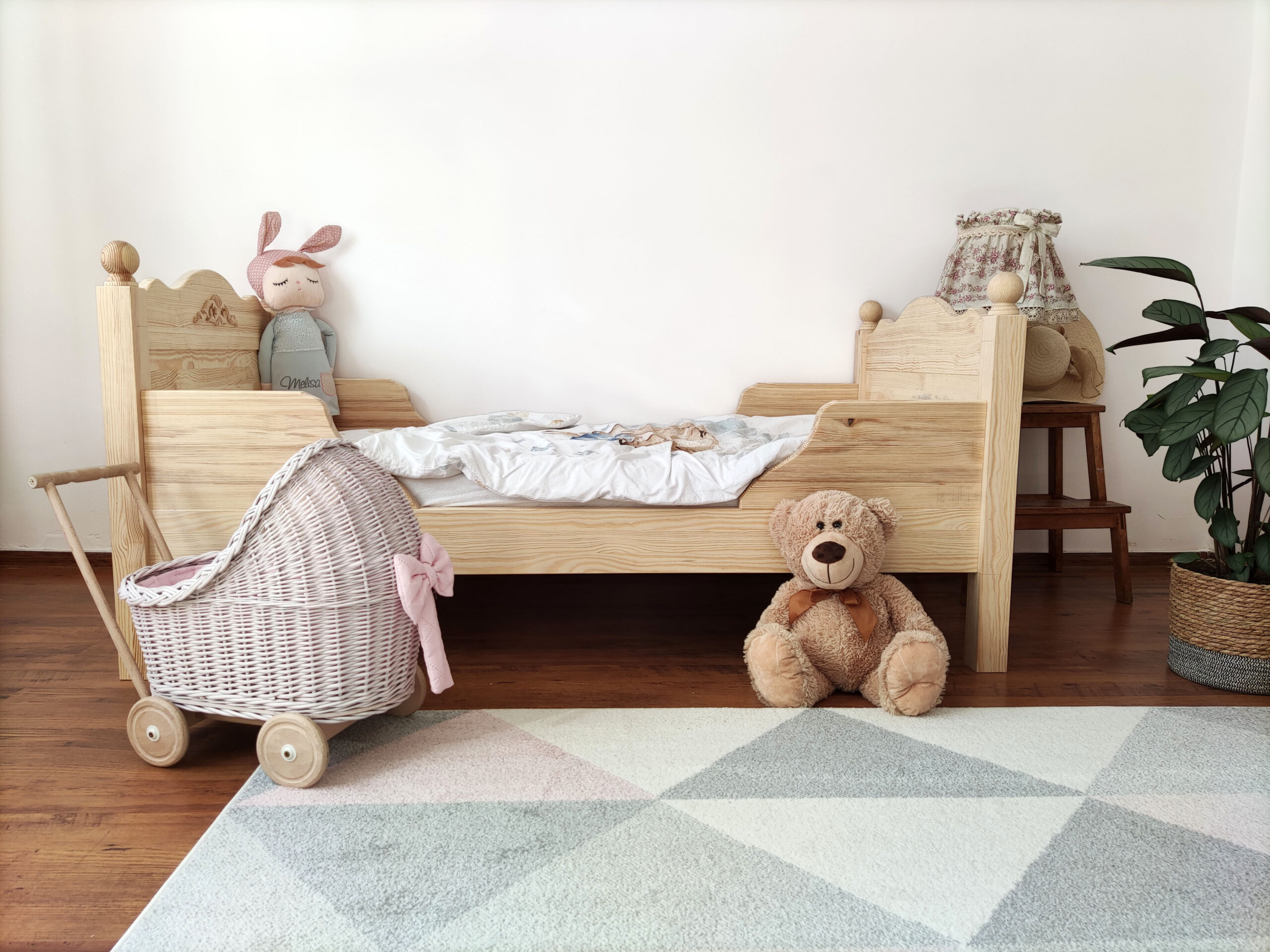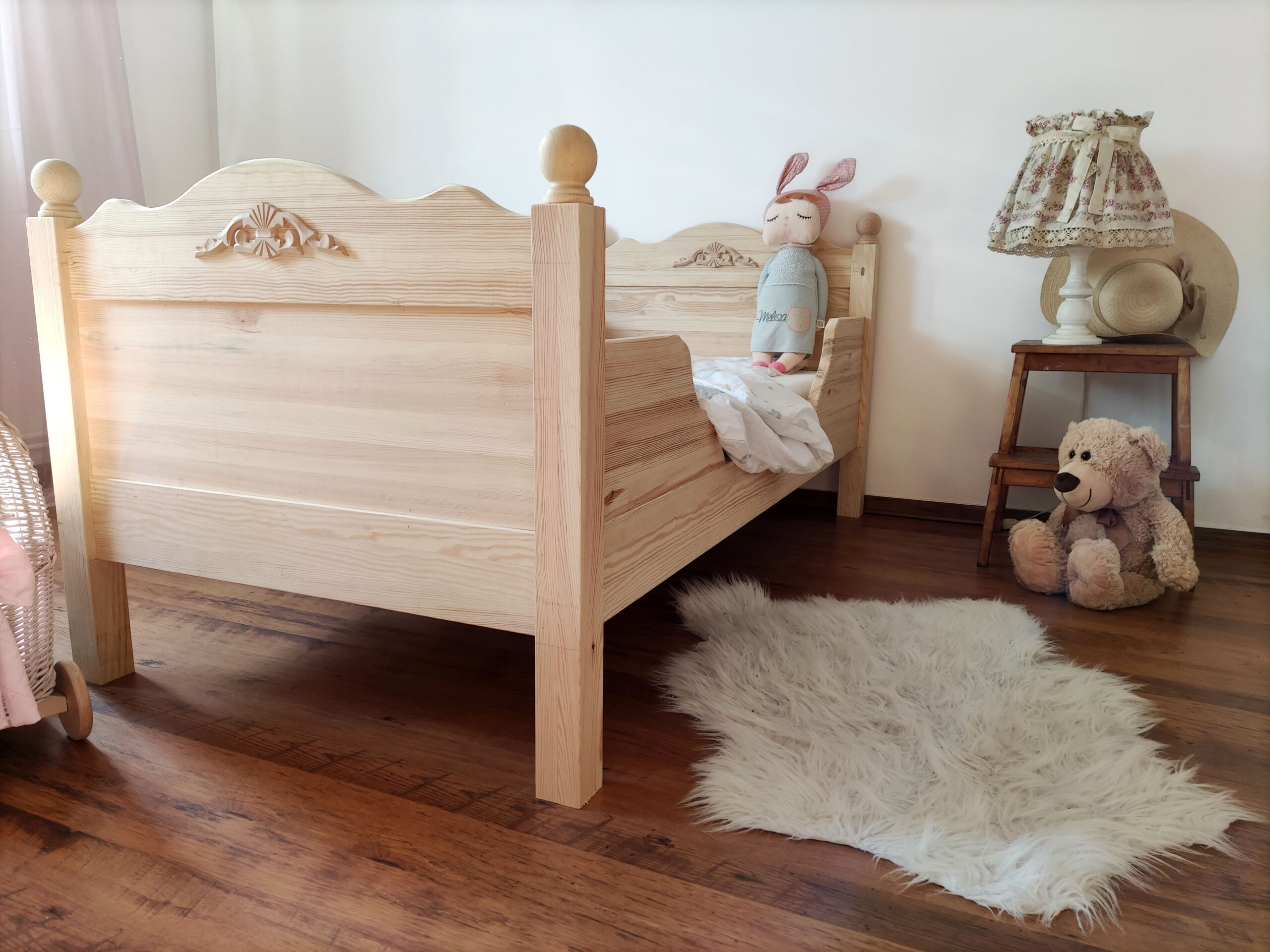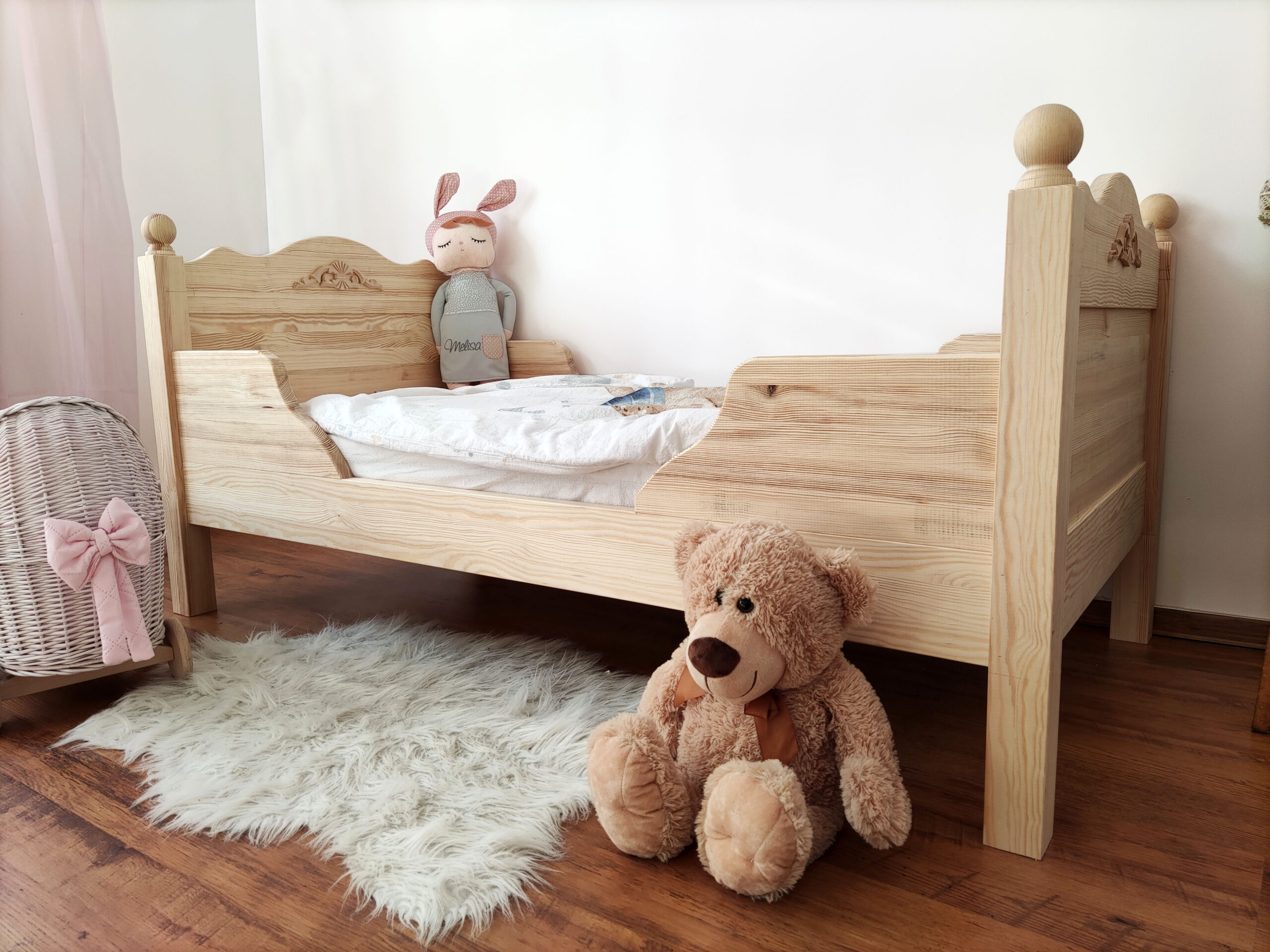 Łóżeczko wysyłane jest w elementach do samodzielnego montażu, w komplecie znajdują się