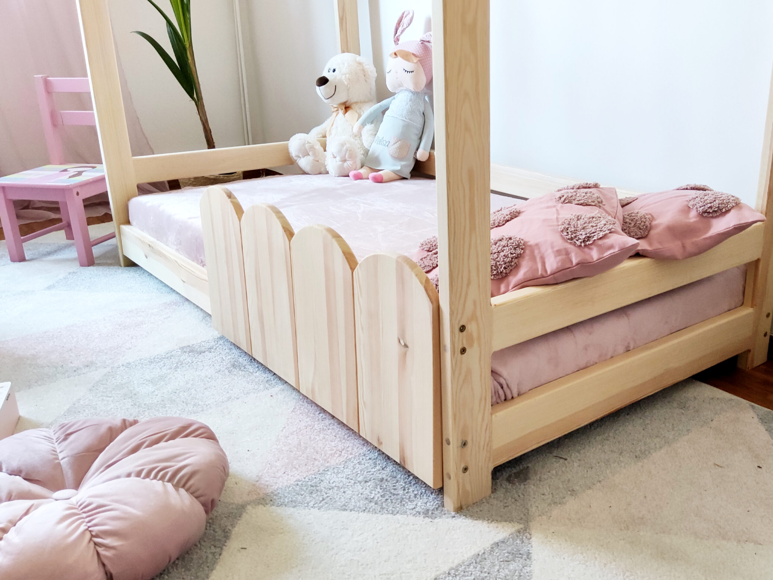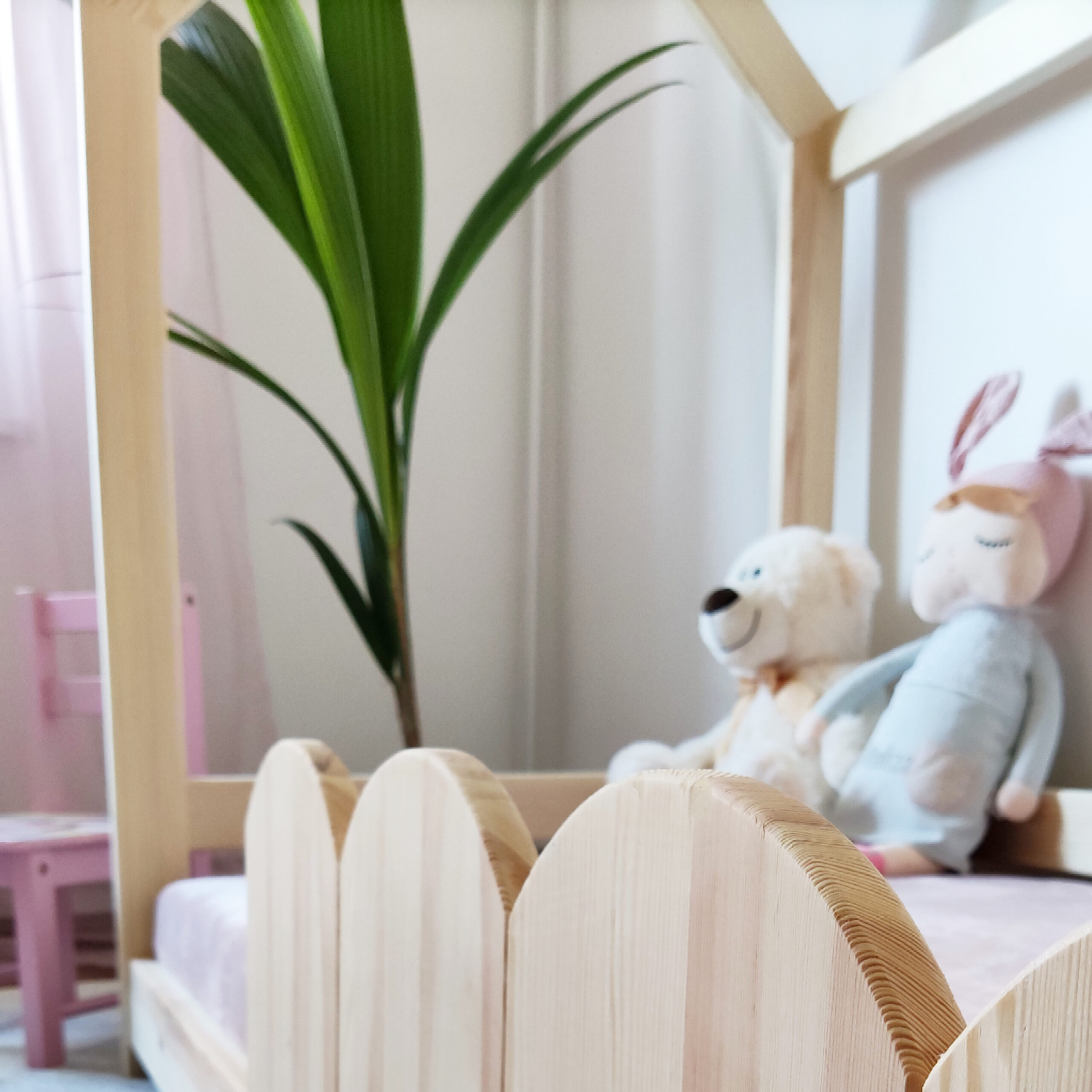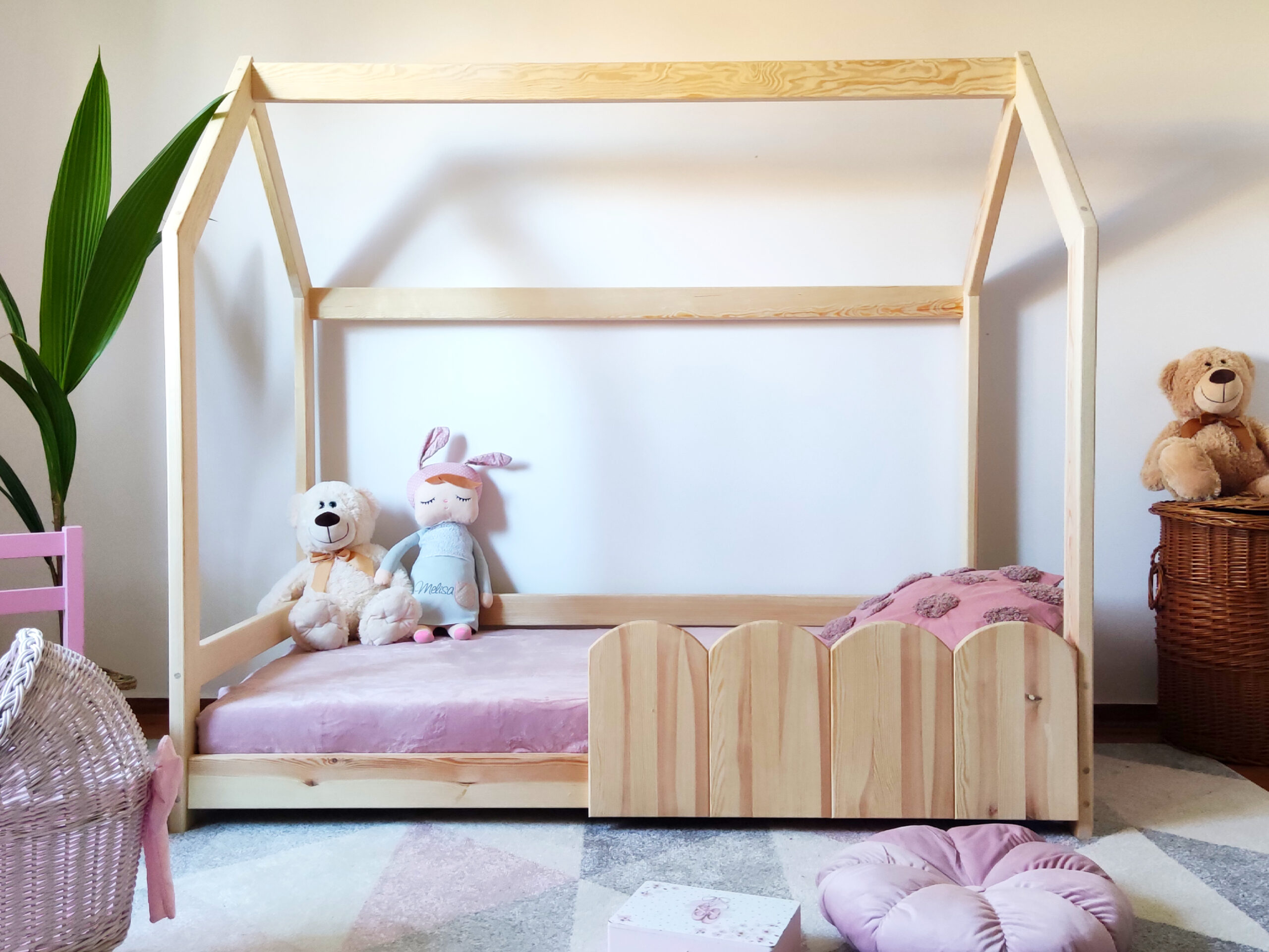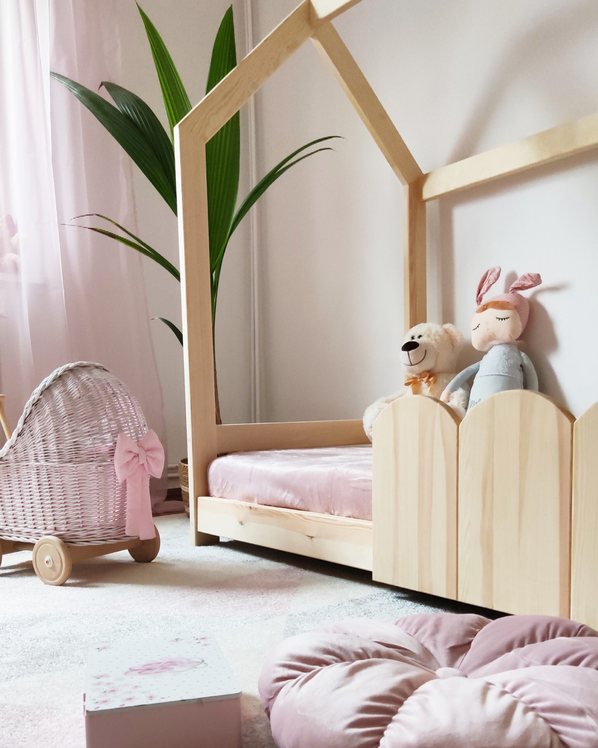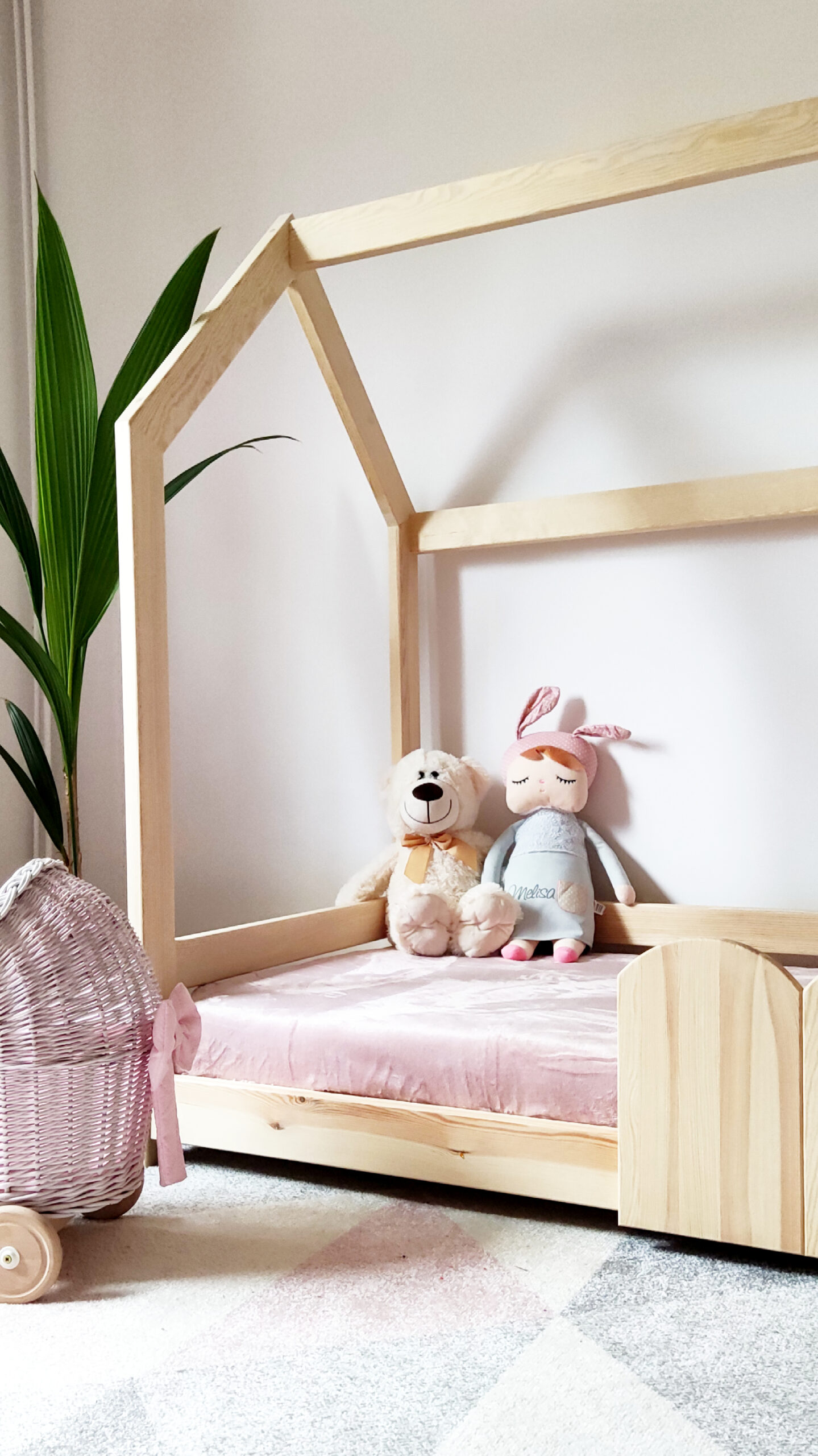 Łóżko domek wykonane jest w stylu skandynawskim. Cechuje się ono szczególną delikatnością oraz niezwykłym urokiem. Posiada nowoczesną konstrukcje i jest bardzo stabilne. Wykonane jest z największą dokładnością tak aby wasze dziecko czuło się bezpiecznie. Łóżko domek sprawia, że wnętrze nabiera dziecięcej radości. Dzieci nie tylko mogą spać w tym łóżku ale wciągu dnia przeobrazić je w tysiące kreatywnych pomysłów. Łóżko domek służy zarówno do spania jak i zabawy. Dzięki temu, że łóżko posiada niestandardowy kształt dziecko rozwija w sobie nowe zdolności. Łóżko domek wzbudza naturalną ciekawość, kształtuje wyobraźnie oraz działa na zmysły. Łózko domek jest przyjemne w dotyku i pięknie pachnie lasem. Niezwykły wygląd łóżka idealnie wpasuje się w nowoczesne wnętrza.