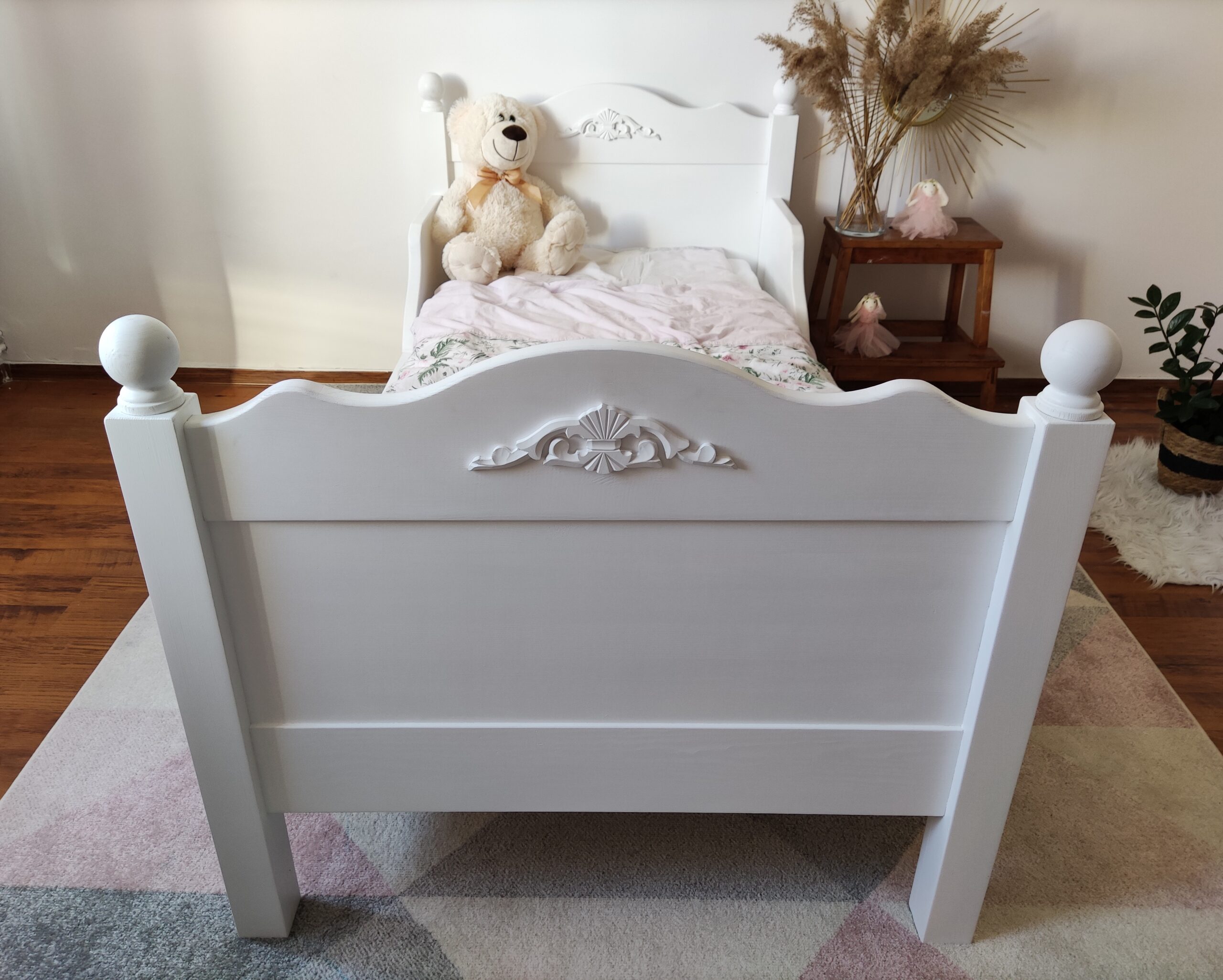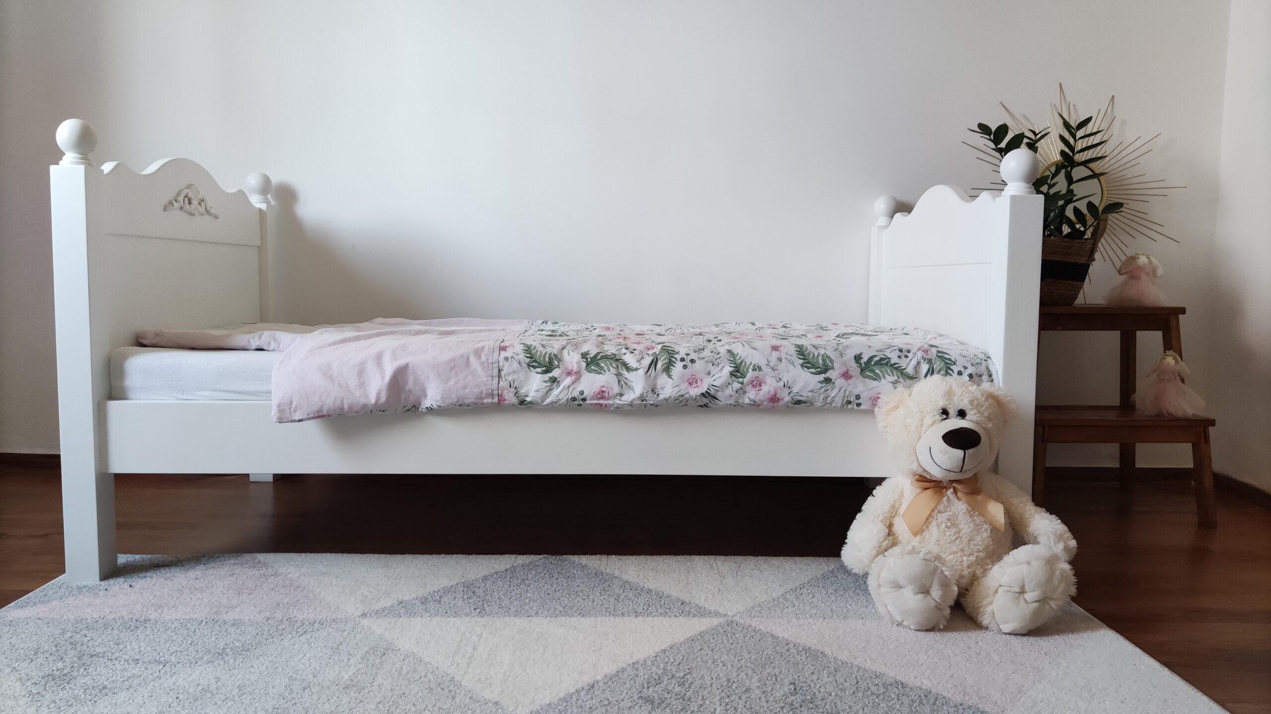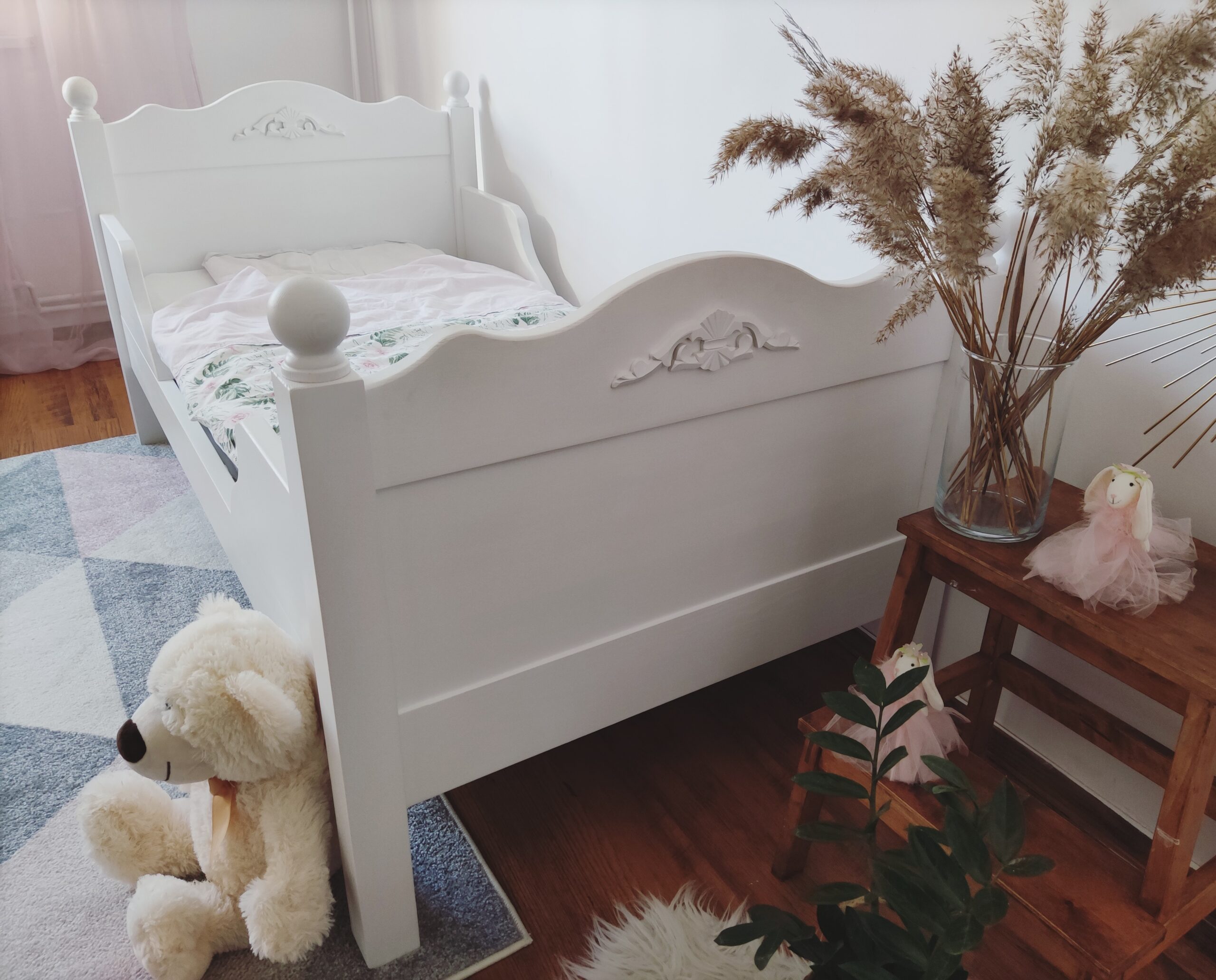 W zestawie rama łóżka, barierki, wezgłowie, zanóżek, stelaż pod materac.