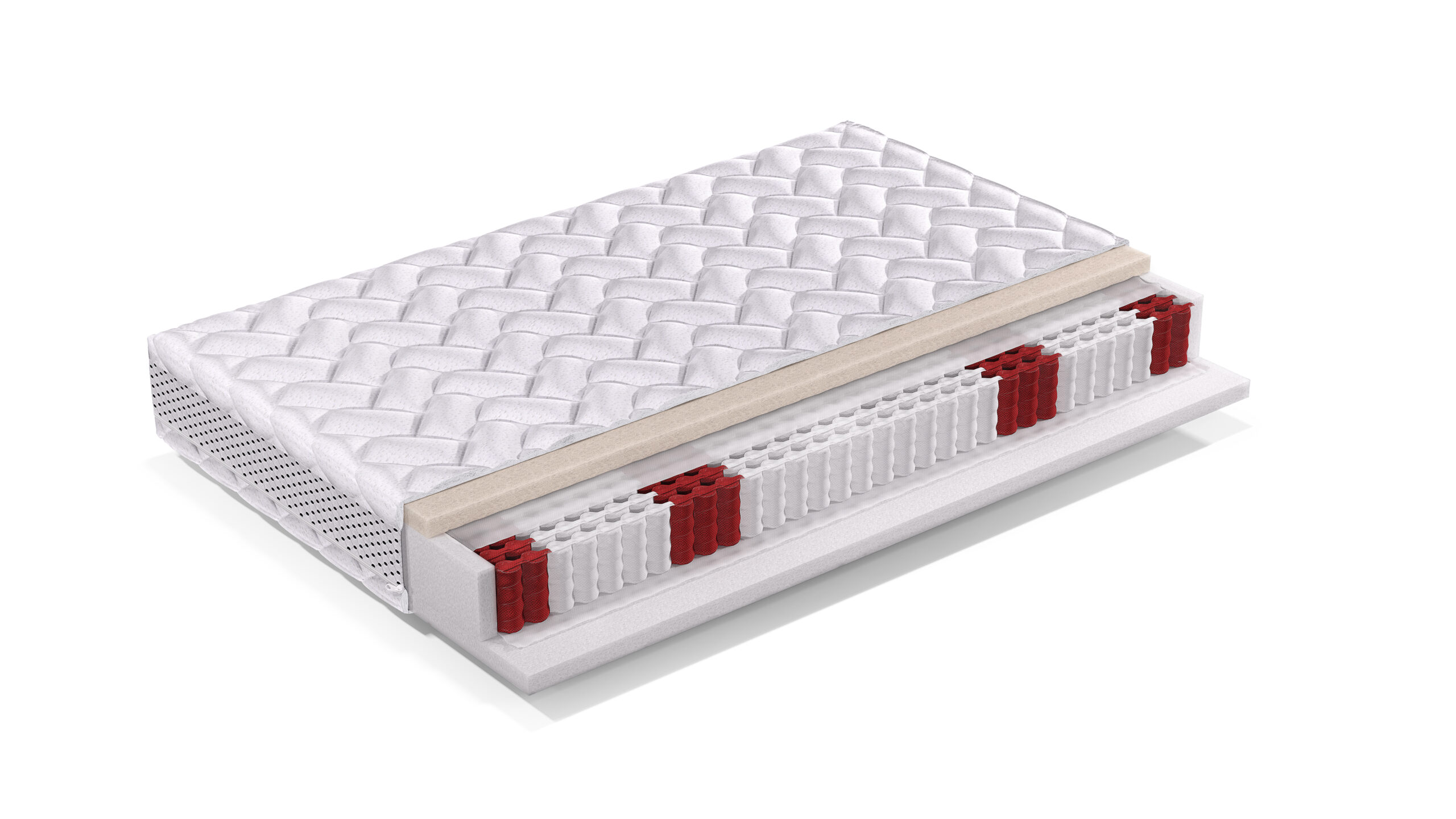 Produkt posiada wkład w postaci formatki sprężyn kieszeniowych. Każda ze sprężyn umieszczona jest w osobnej kieszonce, dzięki czemu w trakcie snu użytkownik ma zapewnione utrzymanie naturalnych krzywizn kręgosłupa. To z kolei redukuje potencjalne uciski, zapewniając bardzo dobry wypoczynek i wsparcie dla układu krążenia.